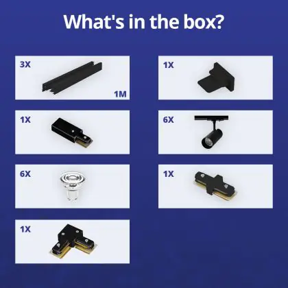 Beschreibung Bright Choice Komplettset 1-Phasen Rail L 1 x 2 Meter Schwarz | incl. 6x Spot + GU10 2700K 3W Dimmbar + Abschlusskappe, Stromanschluss und L -Verbinder