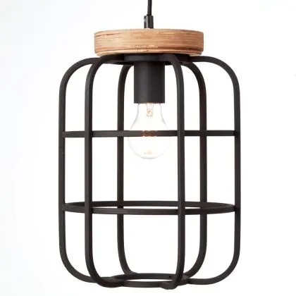 Beschreibung Brilliant Gwen Pendelleuchte Metall Holz Schwarz | 250mm - Geeignet für 1x E27