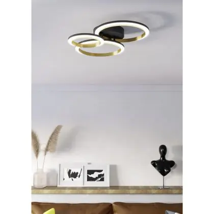 Beschreibung Eglo Deckenleuchte Calliera Stahl Schwarz Gold 20W 2500lm - 840 Kaltweiß | IP20 - Dimmbar
