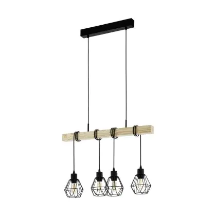 Eglo Pendelleuchte Townshend 5 Stahl Holz Schwarz | IP20 - Geeignet für 4x E27