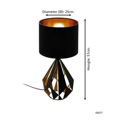 Beschreibung Eglo Tischlampe Carlton 5 Stahl Schwarz Bernstein | IP20 - Geeignet für 1x E27
