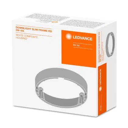 Die Ledvance Downlight Frame Slim Round ist ein runder Aufbaurahmen für DN105-Downlights. Die Bezeichnung DN105 steht für einen Einbaudurchmesser von 105 mm. Die Montage der Leuchte erweist sich als sehr einfach dank mitgelieferter Bohrschablone. Zudem besitzt diese Fassung eine geringe Montagetiefe, sowie ein robustes Gehäuse aus Polycarbonat. Alle benötigte Montagezubehör ist in der Lieferung mit enthalten.
