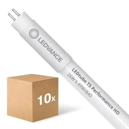 Die Mehrfachpackung 10x Ledvance LED Röhre T5 Performance (Mains AC) High Output 26W 4000lm - 840 Kaltweiß | 145cm - Ersatz Für 49W ist eine effiziente LED-Röhre und der perfekte Ersatz für Ihre konventionelle Leuchtstoffröhre mit 49W und einem G5. Die Röhre hat eine Länge von 1449 mm und einen Durchmesser von 19 mm. Zudem strahlt das Produkt Licht in der Farbtemperatur 4000K - Kaltweiß aus und punktet durch eine lange Lebensdauer.