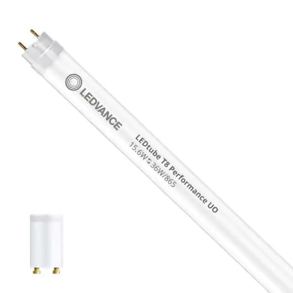 Die T8 LED-Röhren von Ledvance gibt es in verschiedenen Farbtemperaturen: Extra Warmweiß (2.700 K und weniger), Warmweiß (3.000 K), Kaltweiß (4.000 K) und Tageslichtweiß (6.500 K). Diese Röhre strahlt ihr Licht in 6500K - Tageslichtweiß aus.