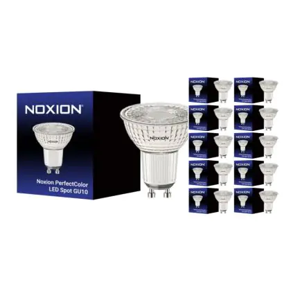 Die Mehrfachpackung 10x Noxion PerfectColor Led-Spot GU10 PAR16 3.8W 345lm 36D - 922-927 Dim To Warm | Höchste Farbwiedergabe - Dimmbar - Ersatz Für 50W ist eine effiziente GU10 LED-Lampe und der perfekte Ersatz für Ihre konventionelle Halogenlampe mit 43W und einem GU10-Sockel, bei welchem die zwei Stifte einen Abstand von 10 mm zueinander haben. Zudem strahlt das Produkt Licht in der Farbtemperatur 2700K - Extra Warmweiß aus und punktet durch eine lange Lebensdauer.