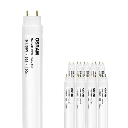 Beschreibung Mehrfachpackung 10x Osram SubstiTUBE LED T8 Value (EM Mains) Standard Output 19.1W 2000lm - 865 Tageslichtweiß | 150cm - Ersatz für 58W