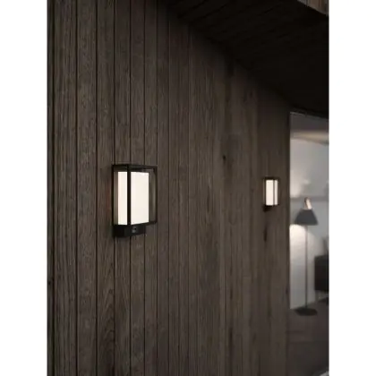 Beschreibung Nordlux Nestor Wandleuchte Aluminium Schwarz 8W 550lm - 827 Extra Warmweiß | IP44 - Bewegungs- und Lichtsensor
