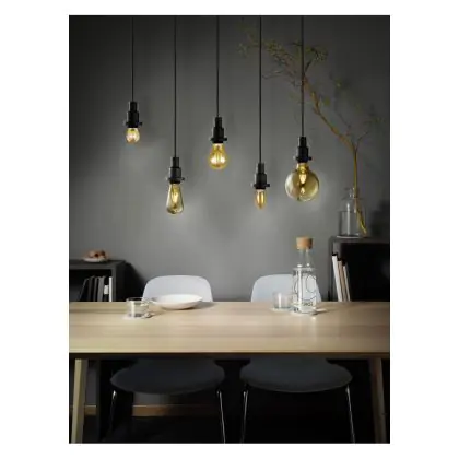 Der Leuchtkörper dieser LED besteht aus goldfarbenem Glas, das einen schönen Vintage-Look erzeugt. Außerdem wird der Blick auf die LED-Filamente im Lampen-Inneren freigegeben, die an die Glühdrähte von Glühbirnen erinnern. Sie sind aber wesentlich innovativer, da sie mit vielen hochmodernen LED-Chips versehen sind und für einen effizienten Energieverbrauch sorgen.