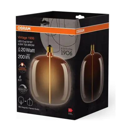 Die Osram Vintage 1906 LED E27 Special Fadenlampe Smoke Tall 4.8W 200lm - 818 Extra Warmweiß | Dimmbar - Ersatz Für 25W ist eine effiziente E27 LED-Lampe mit Retrodesign und der perfekte Ersatz für Ihre konventionellen 25W Lampen mit E27. Zudem strahlt sie Licht in der Farbtemperatur 1800K - Extra Warmweiß aus und punktet durch eine lange Lebensdauer.